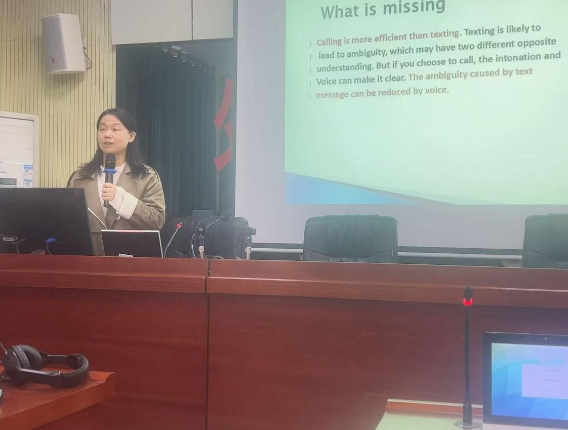 2025年11月4日下午,公共英语教学部胡蔺老师在新校区F309成功举行了教学公开课。公共英语教学部全体教师和其他系部骨干教师到场观摩交流。