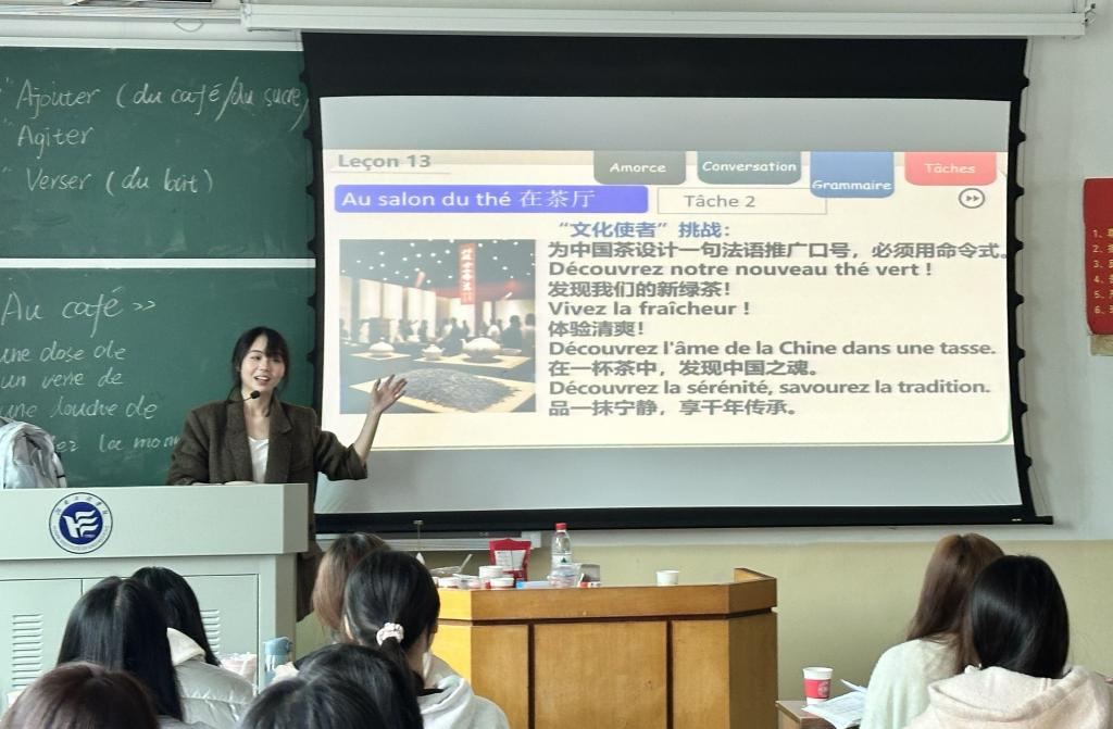 本次公开课主题为《Au café》(在咖啡馆),以真实的咖啡馆对话为切入点,围绕“命令式”语法点展开教学,融合语言学习与文化比较,呈现了一堂生动而富有深度的外语课。课程通过图片、视频等多媒体素材,学生直观感受法国咖啡馆的社交氛围,教师适时引入中国茶文化,搭建跨文化理解的桥梁。在文本解读与语法讲解环节,学生通过角色扮演、命令式操练等活动,掌握了点餐、推荐与拒绝等实际交际技能。在小组任务环节,学生分组设计中国茶的法语推广口号,活用命令式,在语言实践中传递中华文化魅力。课程在轻松愉快的氛围中结束,不仅提升了学生的法语应用能力,更增强了其文化自信与跨文化沟通的使命感。