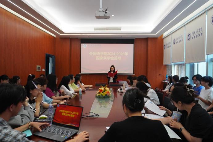 9月30日下午,外国语学院2024-2025学年国家奖学金答辩会在F119举行。学院党委书记陈亚琼、副院长彭禹,党委副书记朱洁,英语系主任苏静、商务英语系主任何梦丽及全体辅导员担任评委