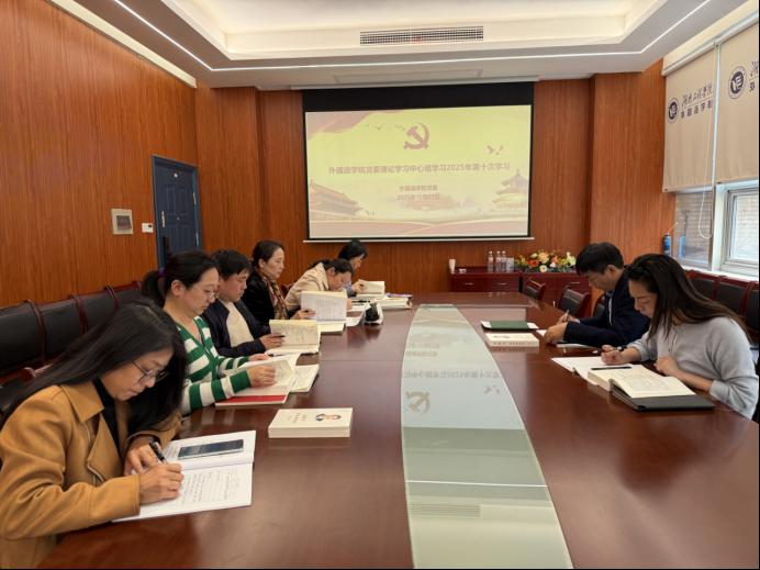 10月27日上午,外国语学院党委理论学习中心组(扩大)2025年第十次学习在F119会议室开展。此次学习由学院党委书记陈亚琼主持,全体党委委员及非党员中层干部参加。